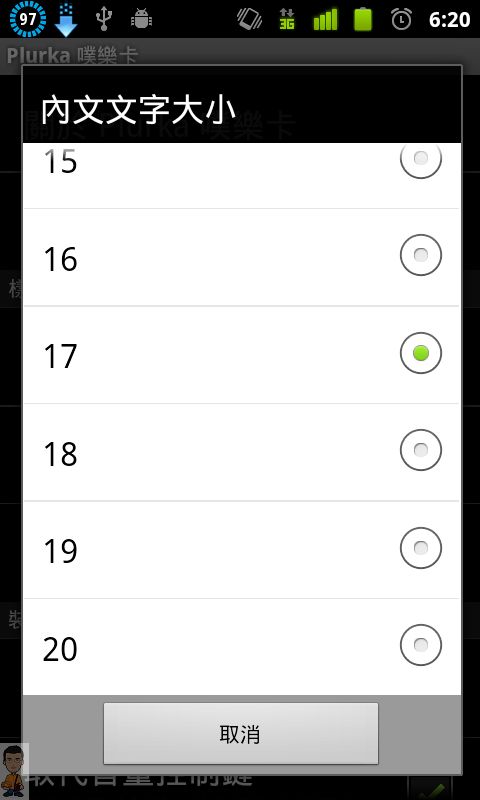 最底下還有清除圖片快取,可以清理手機中因為噗浪卡所產生的圖片。
