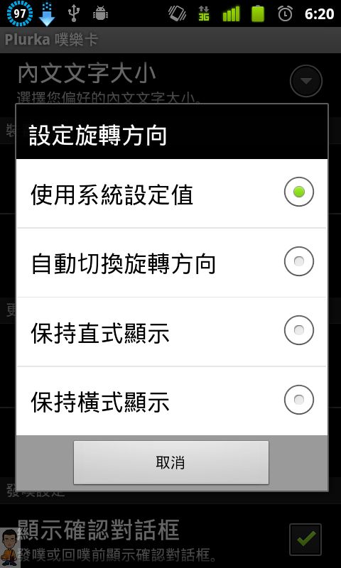 設定旋轉方向,系統設定值就看你有沒有把手機的自動旋轉打開。