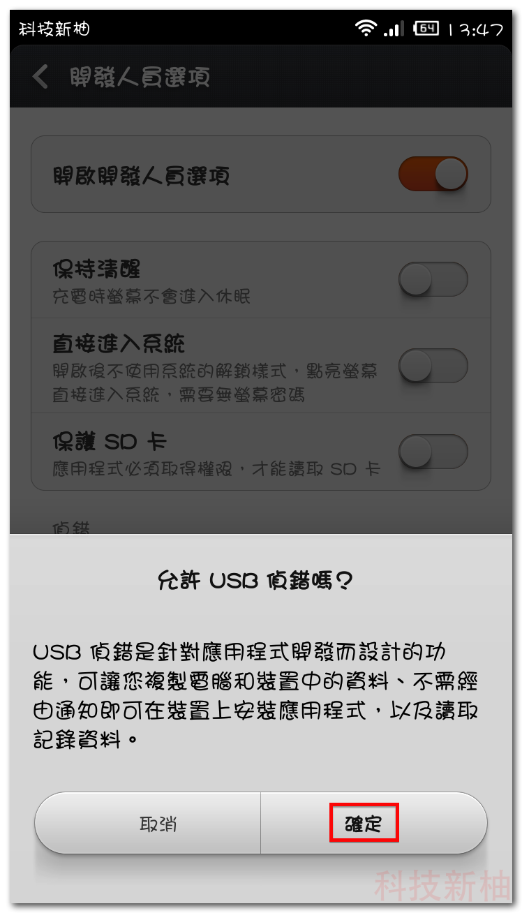 ▲ 這時候又會問是否允許 USB 偵錯,請按下「確定」。