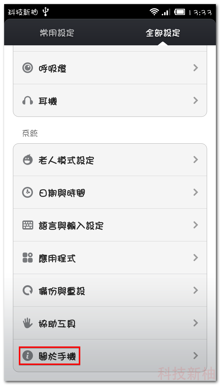 ▲ 要 Root 前,必須開啟 USB 偵錯,由於 Google 在 Android 4.2 後把「開發人員選項」預設為隱藏,因此必須先開啟設定 > 關於手機。