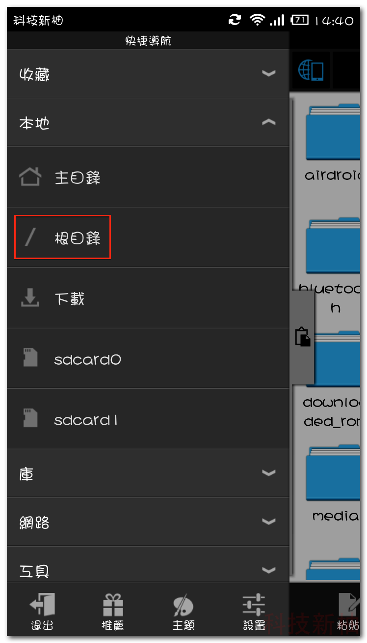 ▲ 按下手機選單鍵,這次切換到「根目錄」。