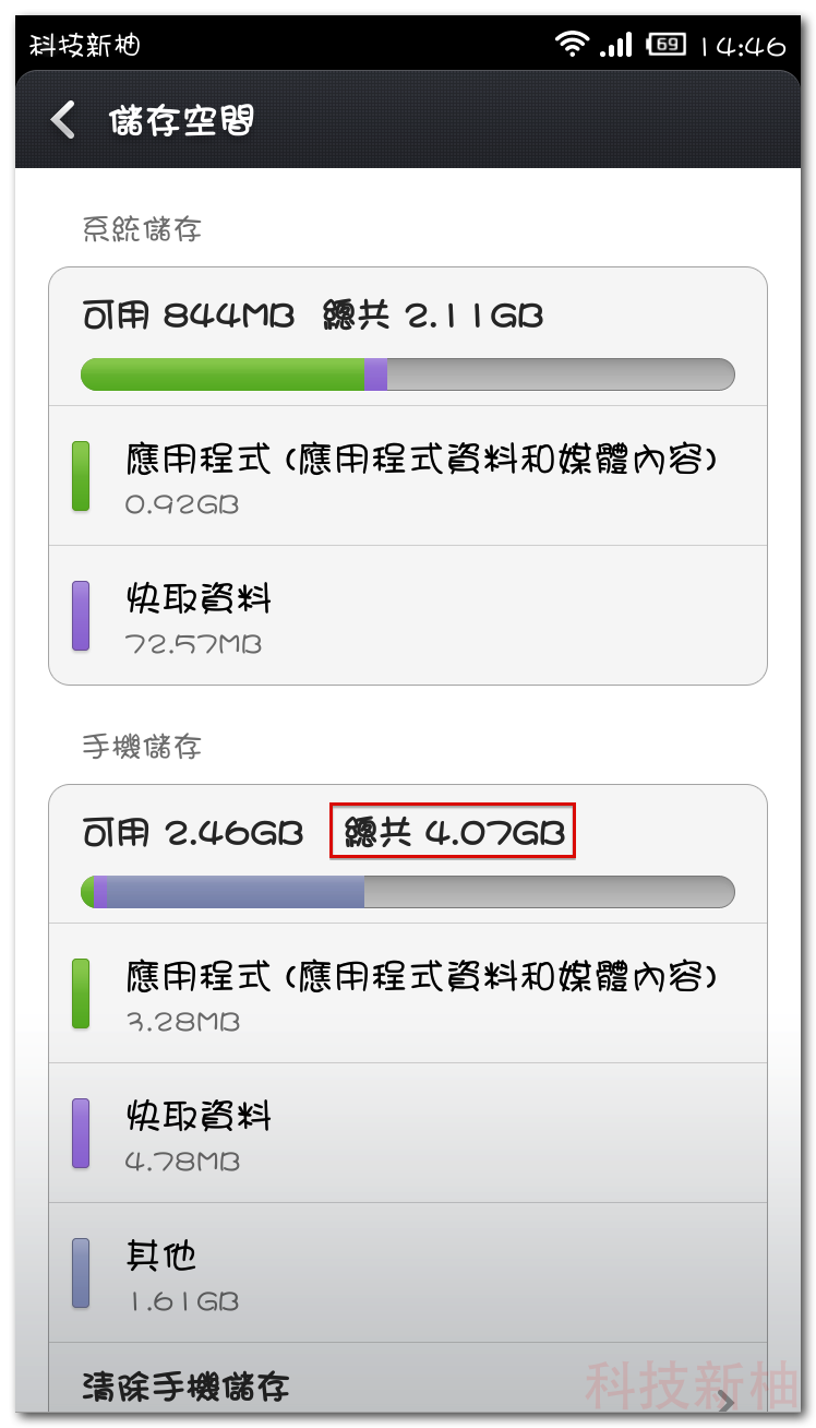 ▲ 筆者用的是 4GB 記憶卡,手機儲存就從 800 MB變成了 4.07GB(依照實際使用記憶卡大小而有變動)。