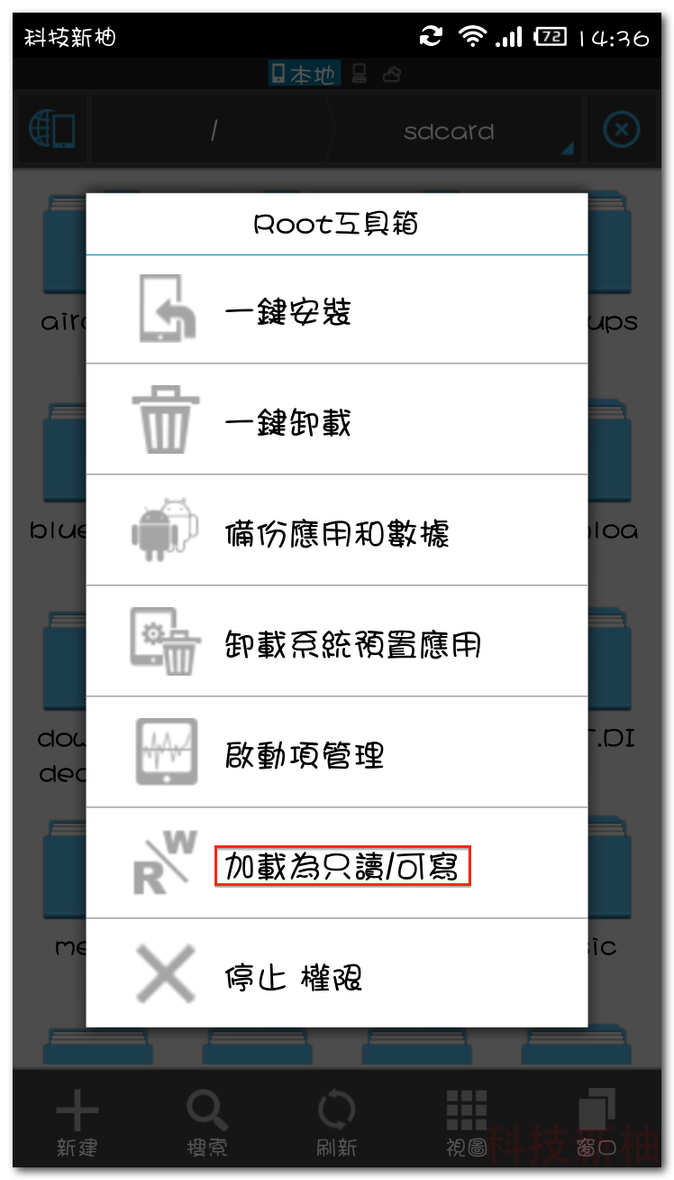 ▲ 在「Root工具箱」中按下「加載為只讀/可寫」。