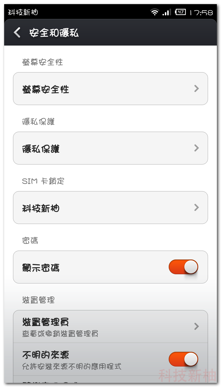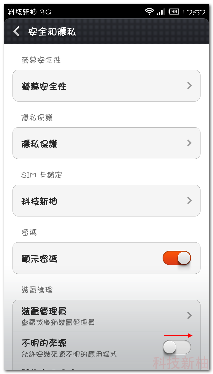 ▲ 這樣就順利啟用了「不明的來源」功能。(可安裝非 Play 商店的 App )。