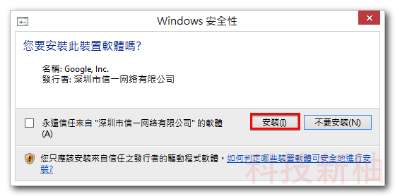 ▲ 電腦會問是否要安裝驅動,按下「安裝」。