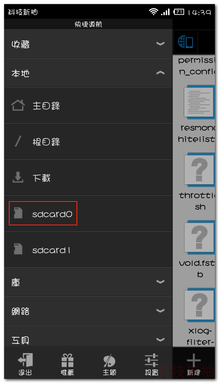 ▲ 再次按下紅米手機選單鍵,展開本地後,選擇你剛剛儲存修改檔的位置,筆者是複製到800 MB空間,所以選擇「sdcard 0」,記憶卡選擇「sdcard1」。