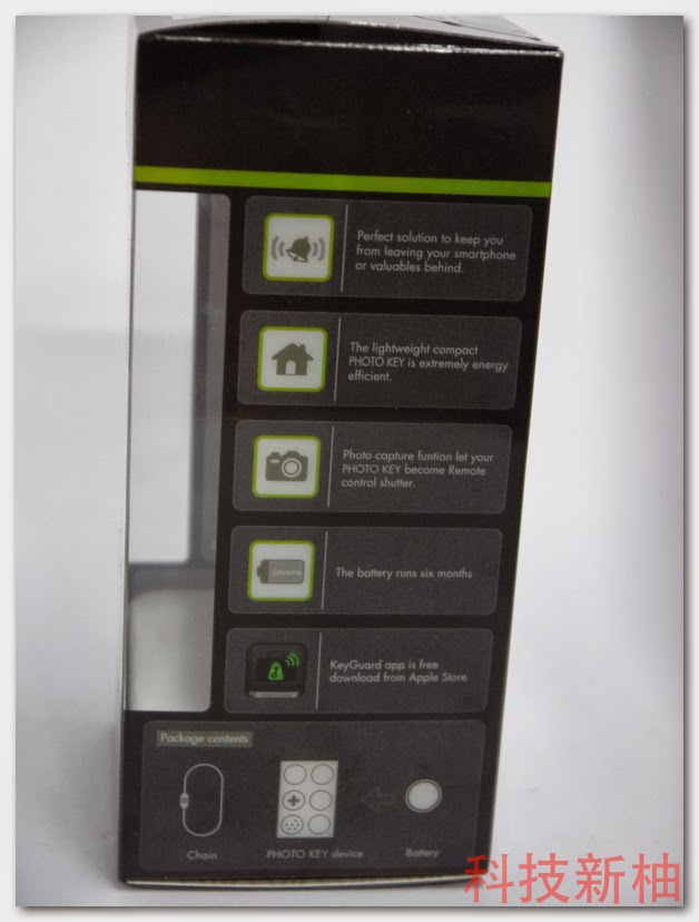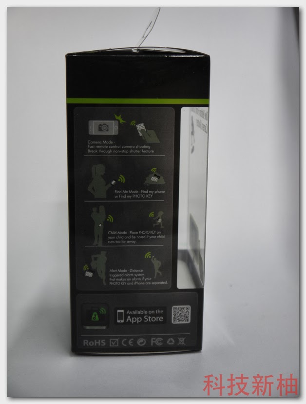 ▲ 包裝左側提供了一些實際應用,產品提供遙控快門、尋找、距離警示等多種模式例如你把 PhotoKey 放到小孩口袋,結果小孩趁你不注意的時候跑走了,這時候手機會發出警示。