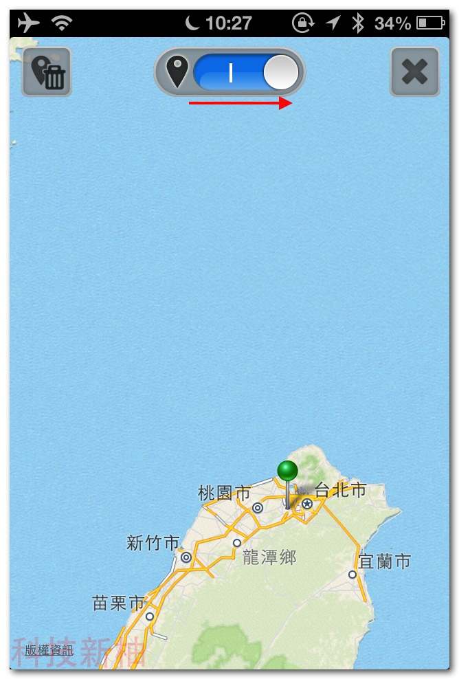 ▲ 按下主要畫面中的地標圖示則會記錄手機位置,當然也等同記錄了PhotoKey 位置。