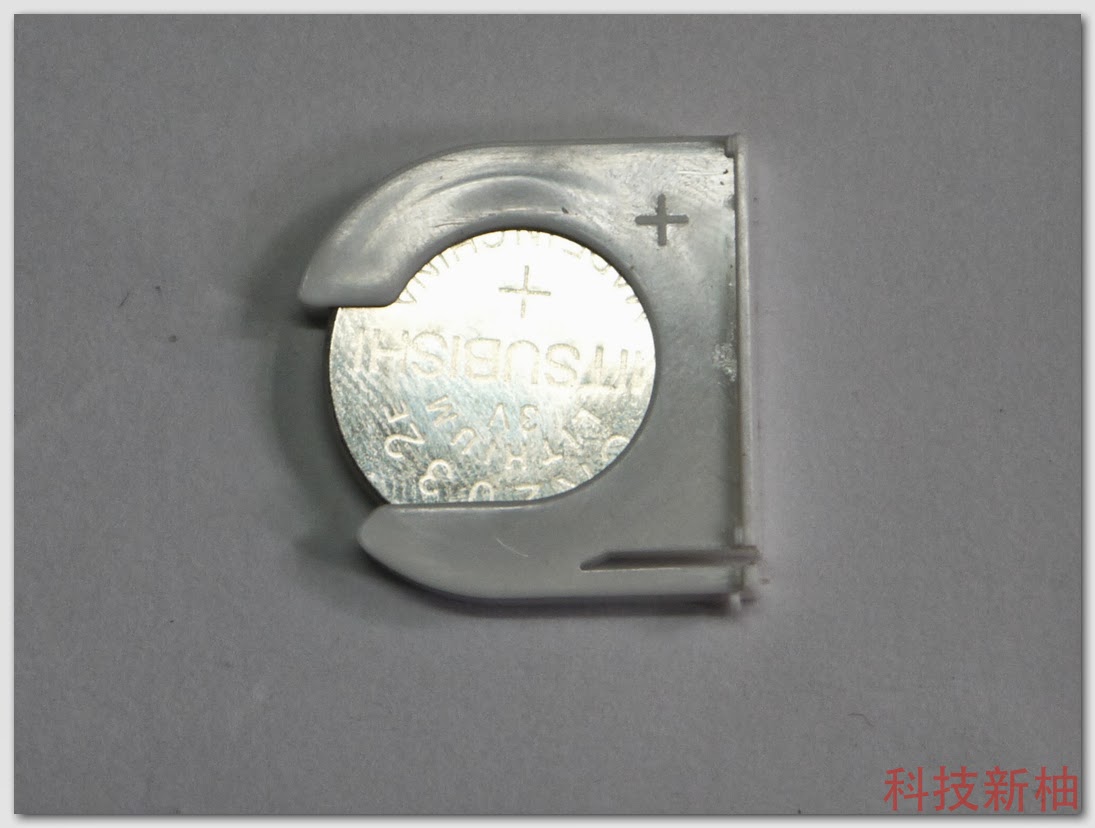 ▲ 搭配的水銀電池型號為 CR2032,放置電池時記得電池正極與電池槽正極標記必須在同一面。