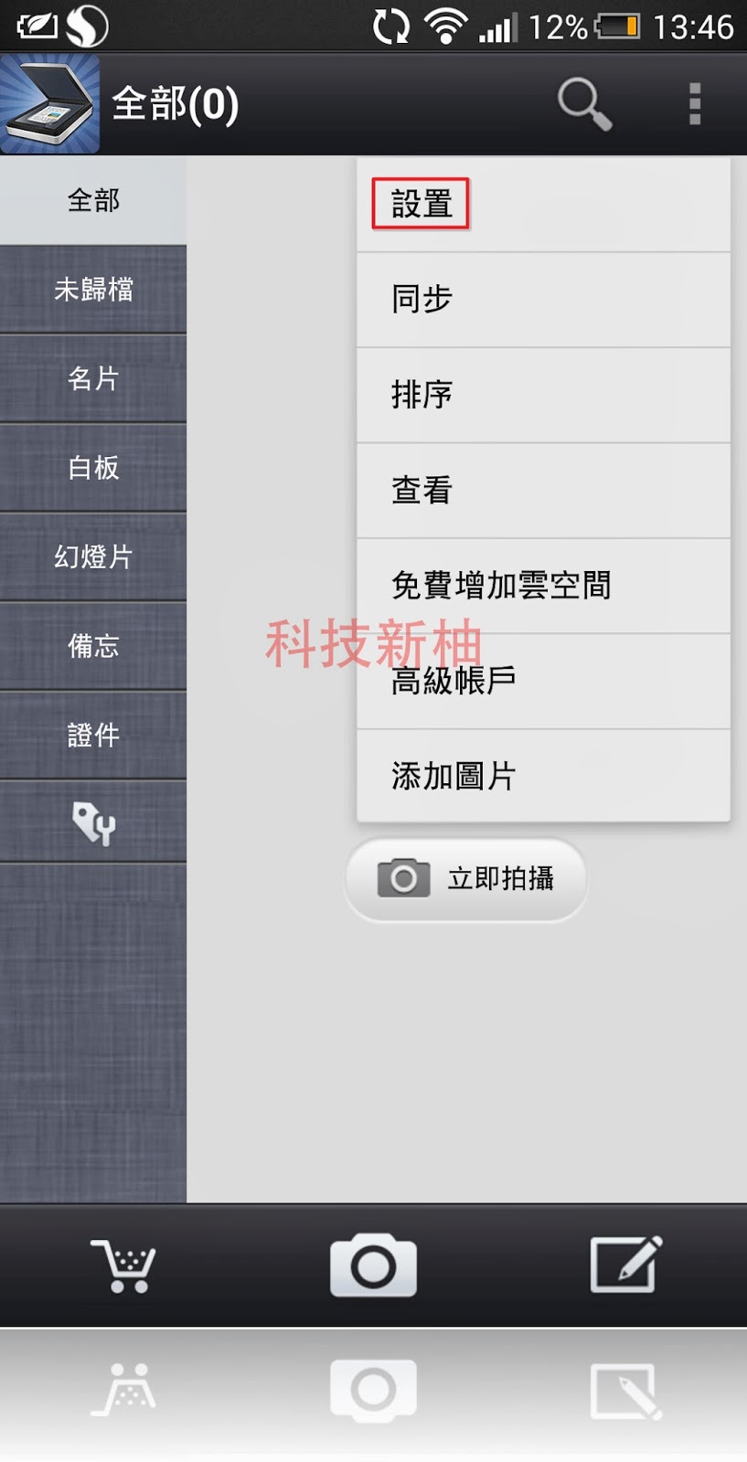 ▲ 下載並安裝之後,按下裝置選單鍵,選擇「設置」。