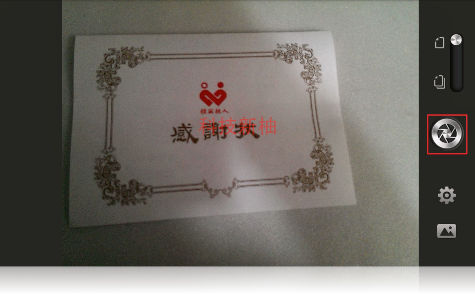 ▲ 回到主畫面後,按下最下面那一排中間的那個按鈕進入拍照模式,這邊刻意拍成斜的。