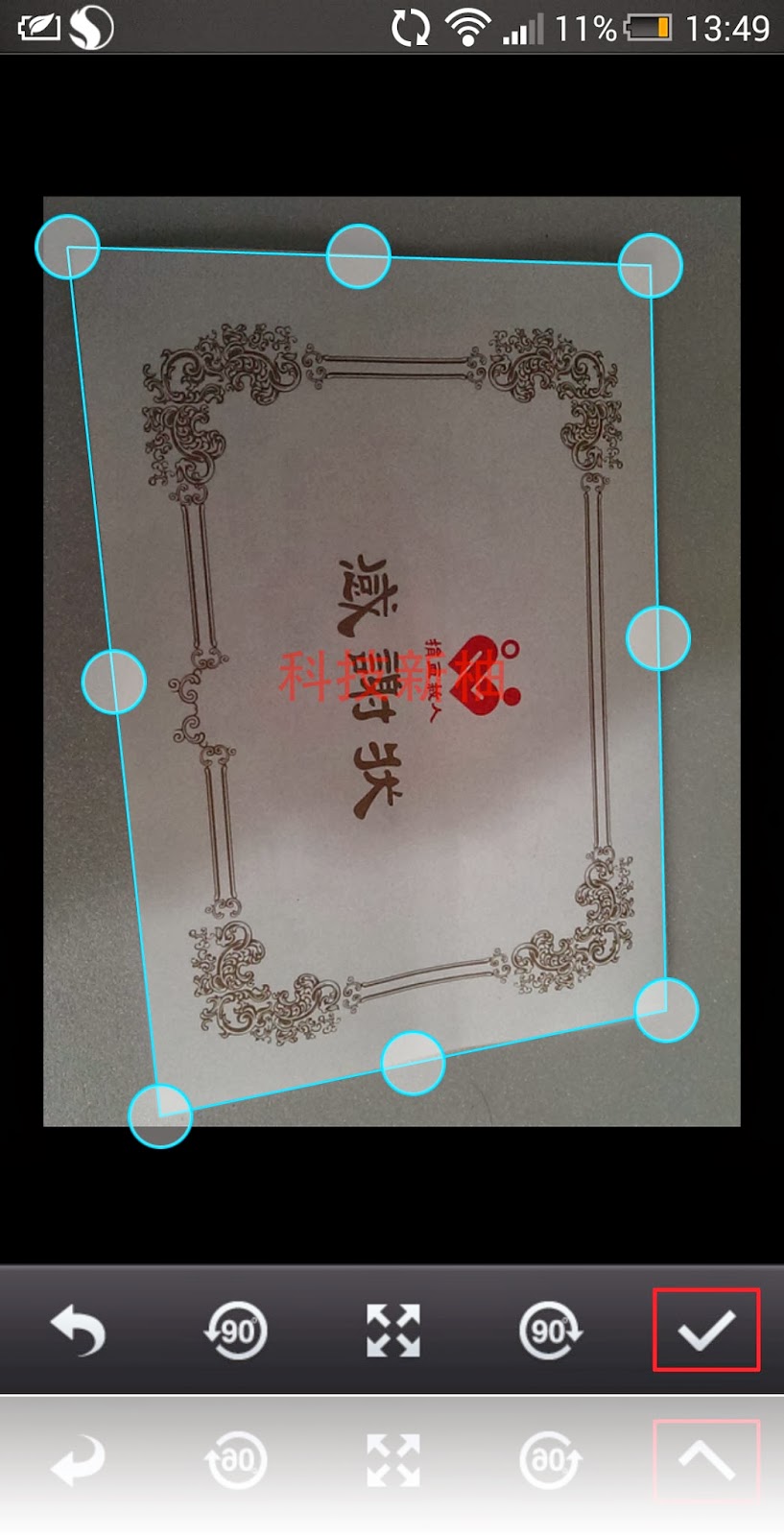 繼之前的「名片全能王」免費升級後,連掃描全能王也可以免費升級,而且就算刻意或是無意間拍歪了也沒關係,系統會自動辨識找出拍攝主體,並且進行裁切和調亮的動作,使用者只要看成果是否符合想要的內容就好了,而且依照現今手機的效能,處理速度非常的快速,幾秒鐘就完成了。