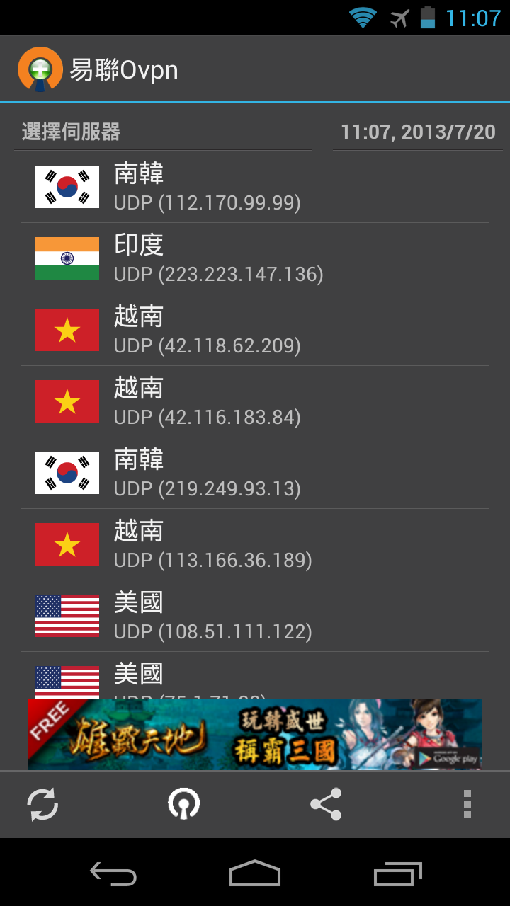 跨國取得貼圖的方式是透過 VPN ,這邊推薦的是「易聯Ovpn」,這個 App 提供各家的 VPN ,而且很容易連線成功。