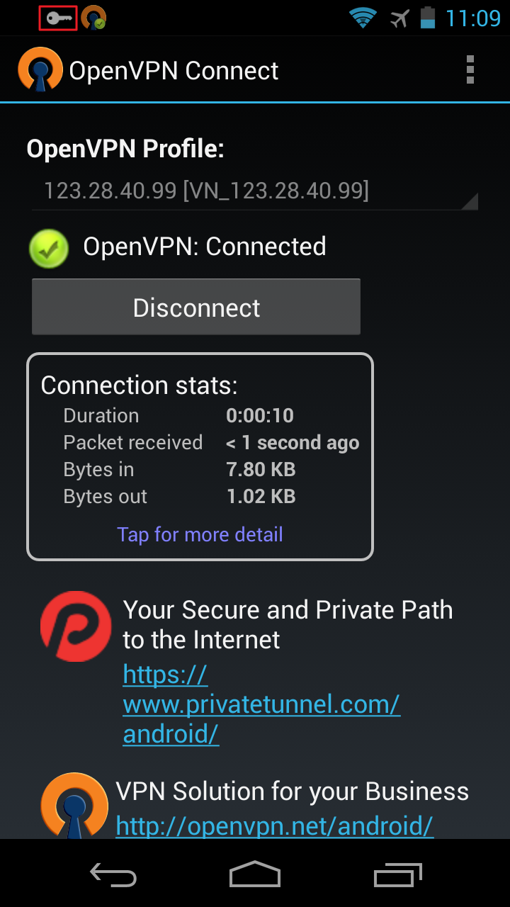 當左上角出現「鑰匙」圖示時表示 VPN 已經成功連線。