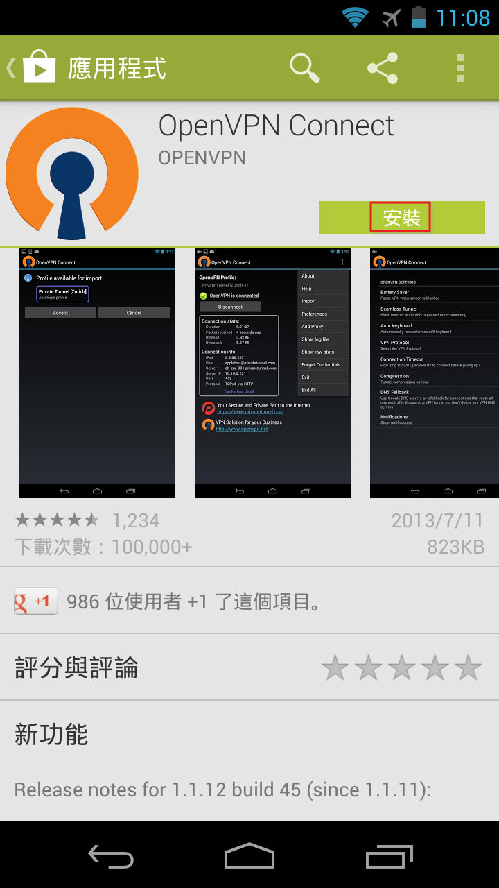 程式會跳轉到 Google Play 商店下載頁面,按下「安裝」。