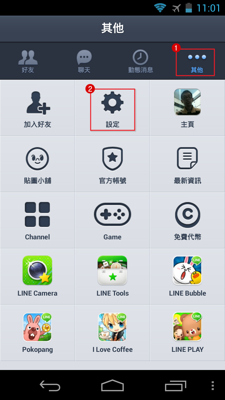 開啟 Line 之後,按下「其他」 → 「設定」。