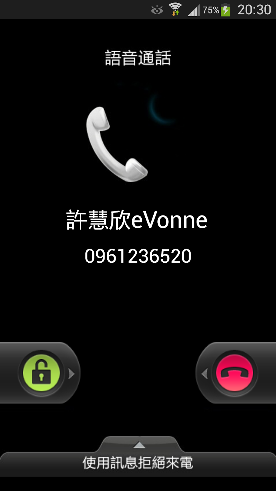 設定的時間一到,就會出現來電畫面,看起來還挺像的。