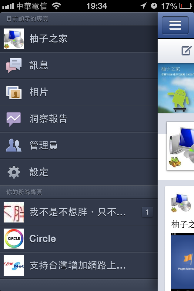 左邊會列出你管理的專頁,不過我只有部落格本身的粉絲頁有在經營,其他都放生了,而 Circle 是和一群朋友一起建立的。