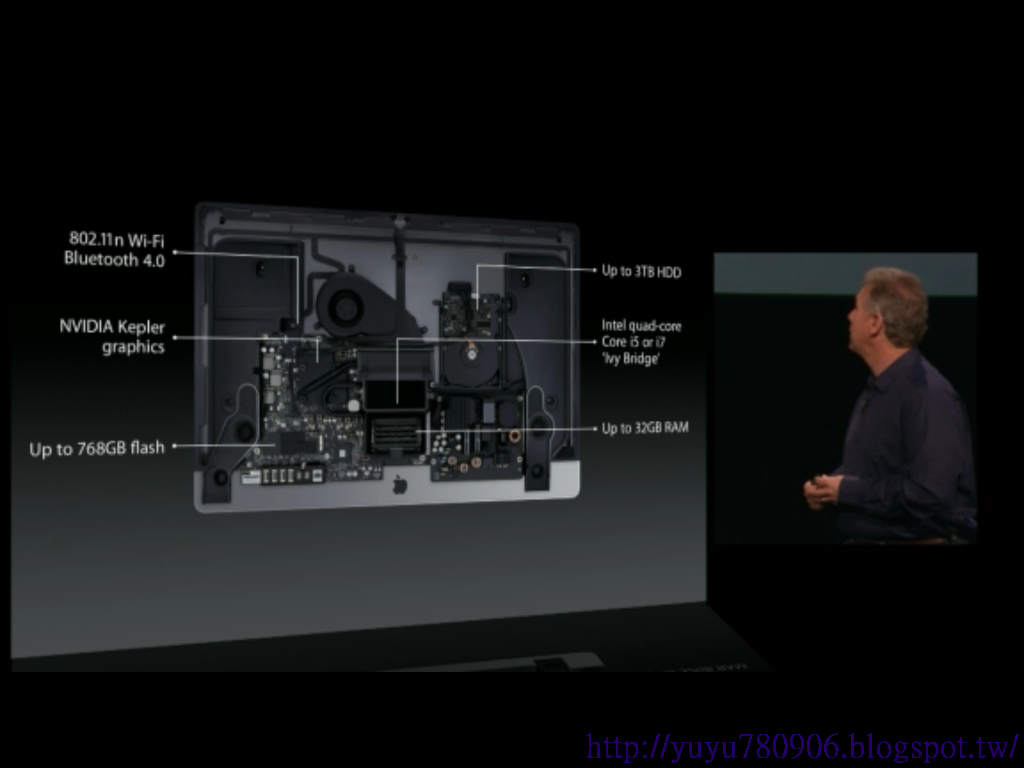 再來看看內部,支援 802.11n 的無線網路、藍芽 4.0 、NVIDIA Kepler 顯示晶片、最高可達768GB 的快閃儲存記憶體及3TB的傳統硬碟、最新一代 Intel Core i5/i7 處理器以及可擴充到32GB 的記憶體。