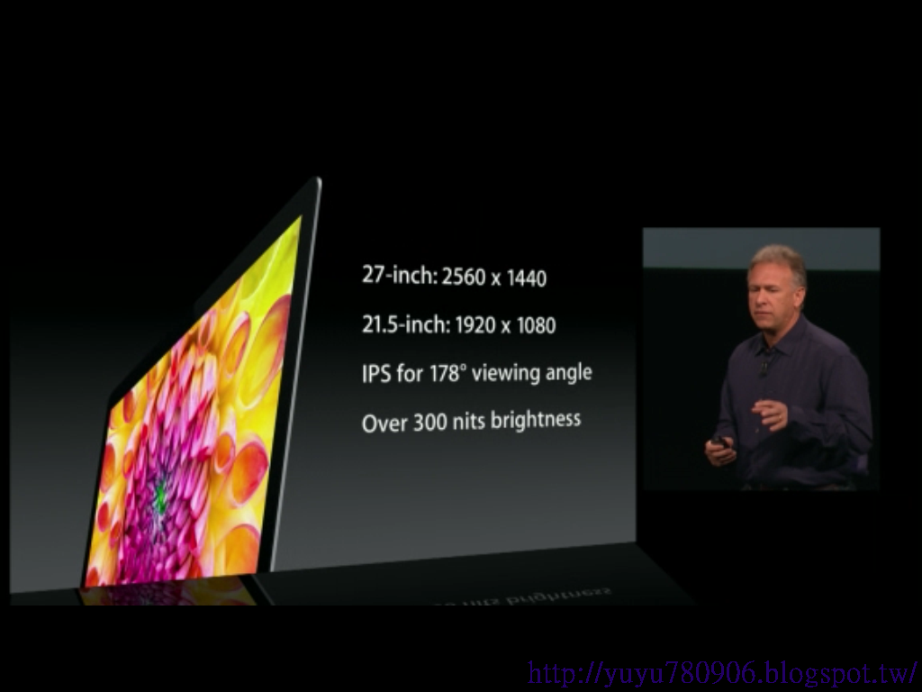 iMac 有兩種螢幕尺寸:27 吋和 21.5 吋,解析度分別是 2560x1440 及 1920x1080 ,一樣採用IPS 面板,可視角達178度以及超過 300 流明的亮度。