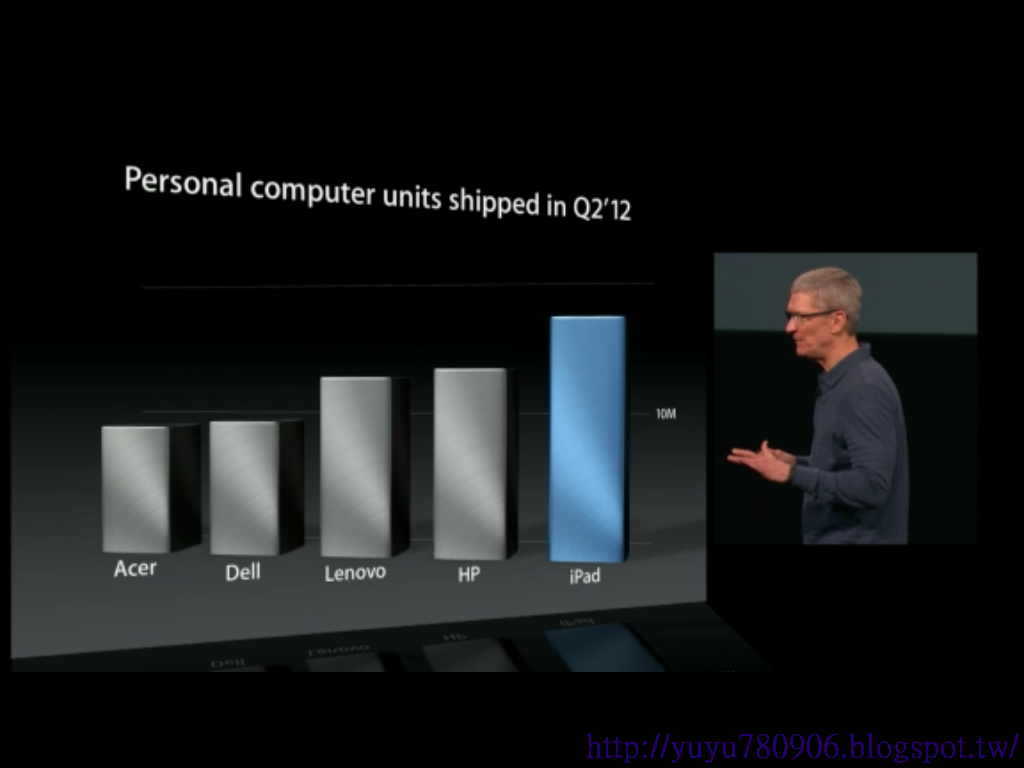 2012 年第二季個人電腦銷售量,iPad 遙遙領先其他電腦品牌。