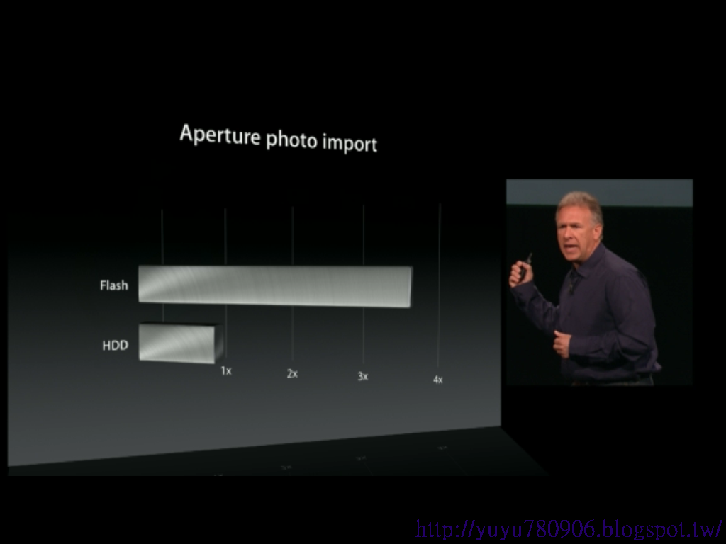 以 Aperture 這套軟體來說,匯入相片的時間比 Flash 稍微慢一點,但比 HDD 快上很多。