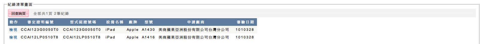 現在到 通訊傳播管理系統 輸入iPad,並且設定日期在3/28就可以查詢到新iPad審核通過的結果。