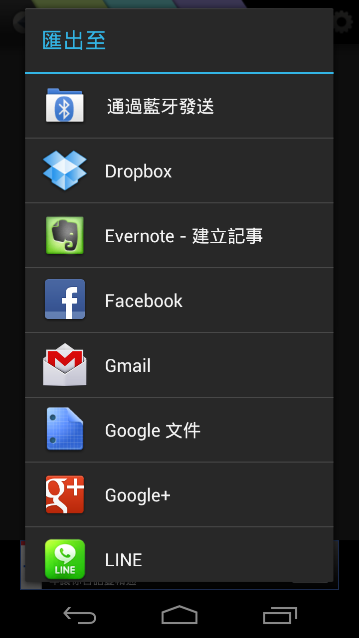 匯出會根據你手機安裝程式而有多寡。