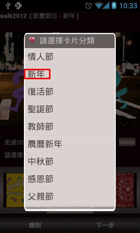 先選擇卡片分類,這邊以賀年卡為例子,選擇「節慶節日」。