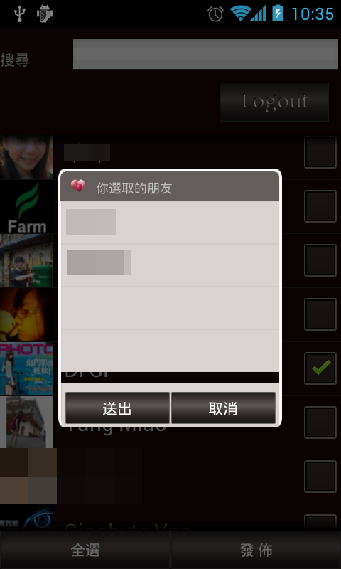 勾選想要發送的好友,選擇發布。