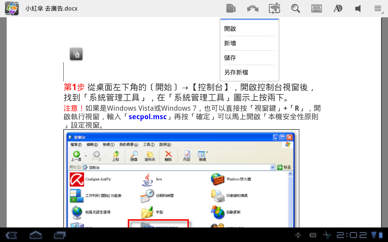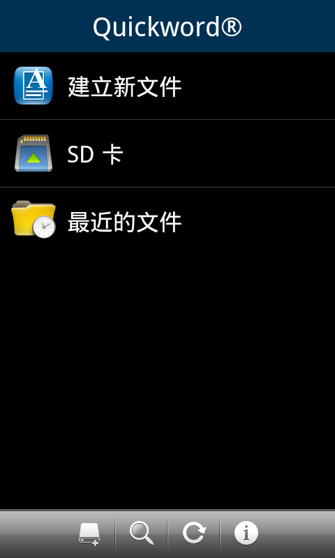 以Quickword為例子,這是開啟Word文件的程式,你也可以建立新文件。