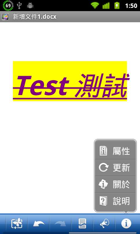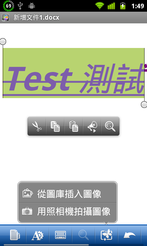 第四個是搜尋;第五個是呼叫鍵盤;第六個是文字的格式設定,這是字型的設定。