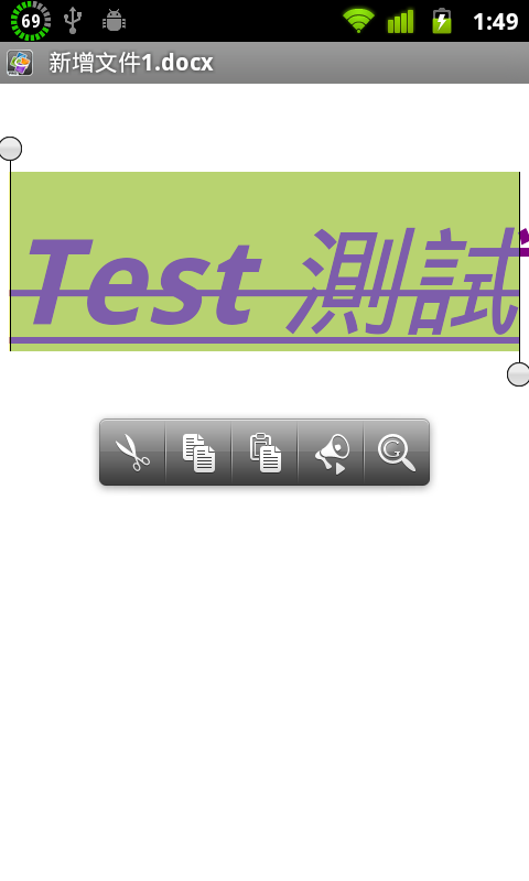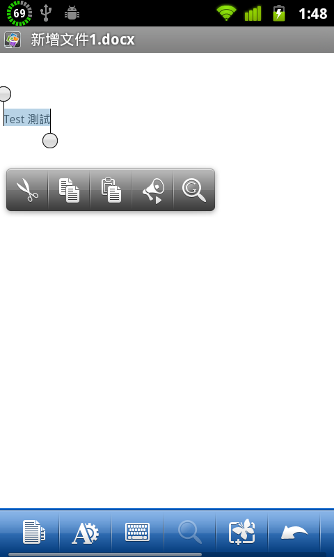 選取文字後,底下會有五個快捷按鈕,包含剪下、複製、貼上、讀出以及Google搜尋。