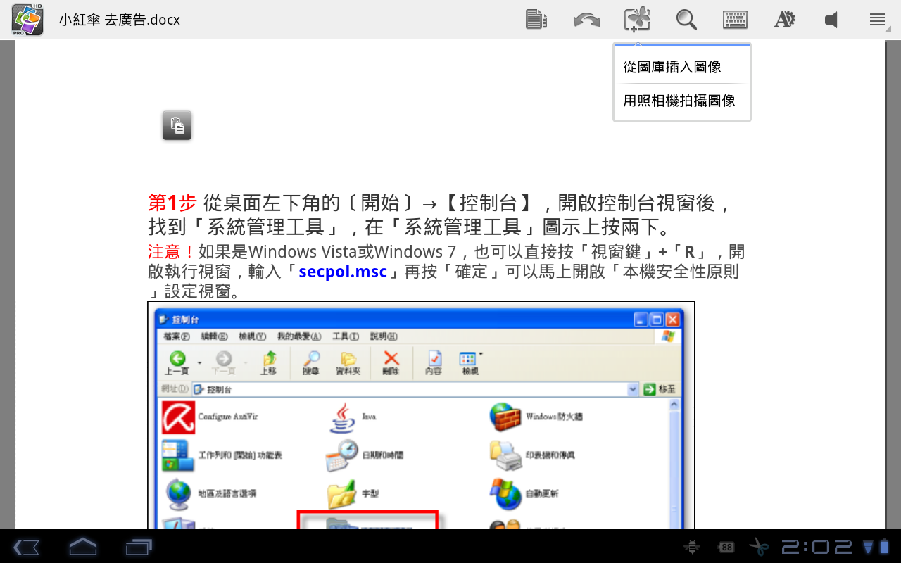 請參考 帳號申請教學 並登入,手機使用者請下載 Quick Office Pro。