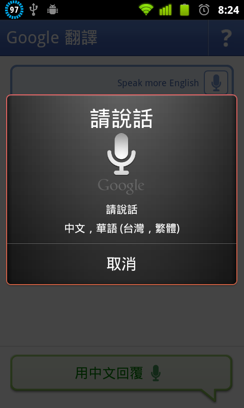 你講完中文,也確認完後,程式也會朗讀英文給對方聽。