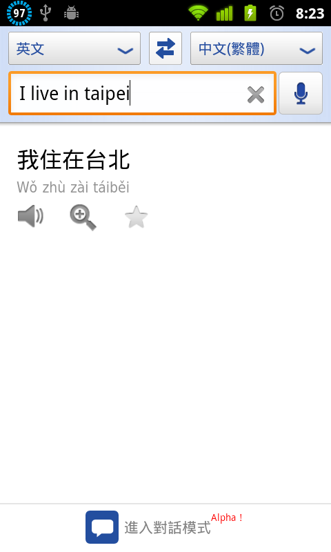 像是:「I live in Taipei」。底下會出現「進入對話模式」