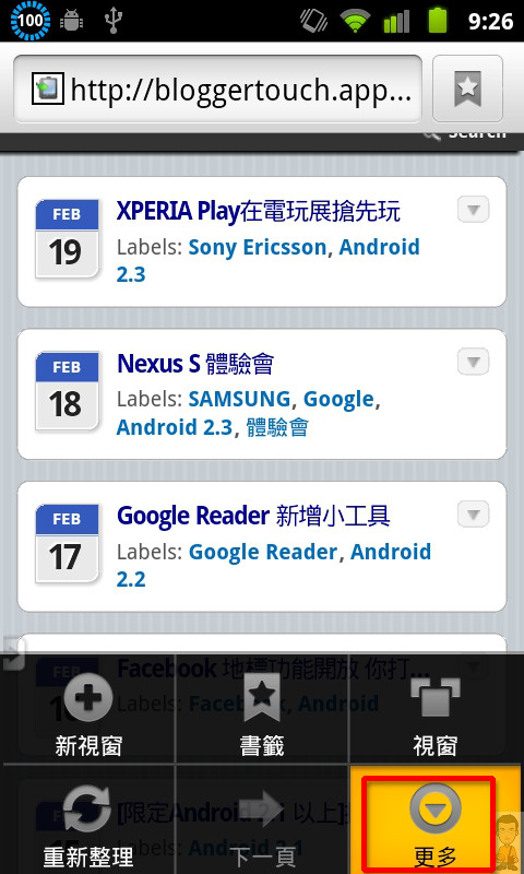 確定連結完成後,回到手機端,請打開想要傳送到電腦的網頁(此處以內建瀏覽器為例子),按下「更多」。